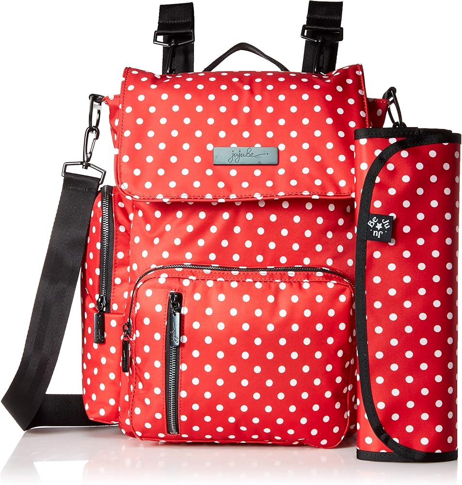 The JuJuBe Be Sporty Backpack is a bag you need that can keep up because mom life is busy. The Be Sporty includes all the JuJuBe features you know and love with added rugged metal zippers. Lots of smart pockets will keep you organized through everything. The three-way carrying system allows you to use the Be Sporty as a backpack, as a messenger bag, or you can simply grab-and-go with the top handle. Holds up to your modern mom life, and you can still sport it after the diapering days are through! For your convenience, JuJuBe products are machine washable and can be left out to air dry. White polka dots sparkle upon a fiery red background highlighting the latest jewel in our crown … Black Ruby. Hidden inside this treasure, glimpse the precious mix-n-match lining of white with mini black dots! As with all our Onyx Collection, the black matte hardware adds the perfect finishing touch! For your convenience, JuJuBe products are machine washable and can be left out to air dry. All JuJuBe items come with a Lifetime Limited Warranty against manufacturing defects when purchased from an Authorized JuJuBe Dealer. Founded in 2005, JuJuBe is a Southern California company that uses science, style and attitude to create diaper bags, purses and other fashionable accessories. JuJuBe assimilated the most advanced technology possible to create a stylish and intelligent product line that's unrivaled in the industry.