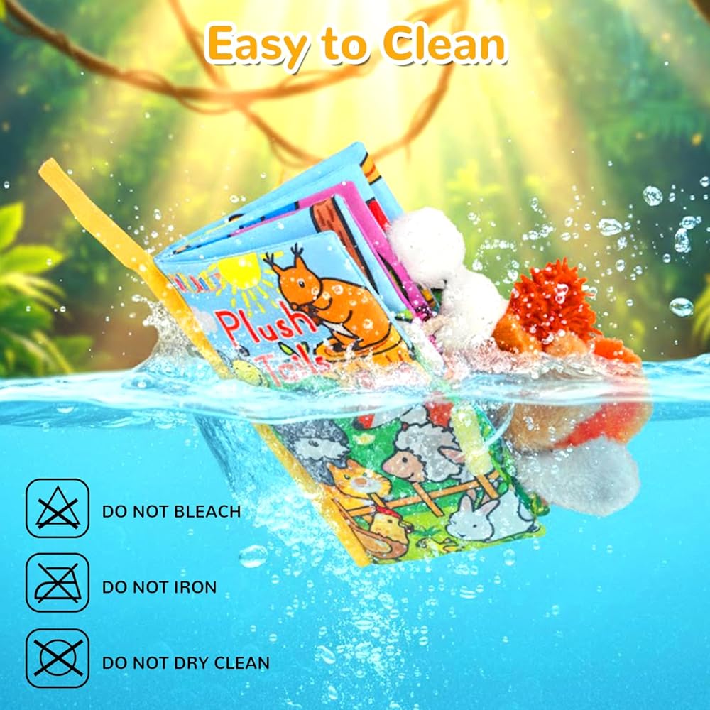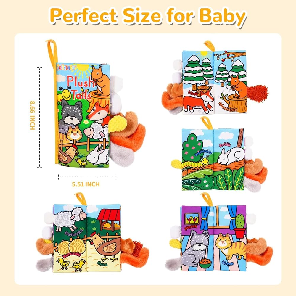Baby Musical Cloth Books include 4 different topics. Deluxe edition with features songs, melodies, sounds, and cheerful phrases; Upgraded edition with wrinkle function of the cover and screams improves the baby's audio recognition ability and athletic ability, and the textured animal tail provides sensory interaction. These interactive cloth books help babies spend endless hours of fun!