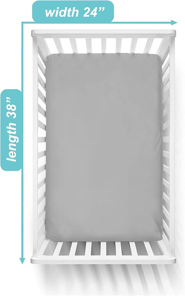 Our 100% supreme cotton jersey knit fitted mini crib sheet provides comfort for the next generation. Fits standard 24" x 38" mini crib mattresses and can fit up to 3" thick mattresses; Deep pockets with elastic all around provide a snug and secure fit for baby's comfort. Machine washable cold with gentle cycle, tumble dry low for best results.