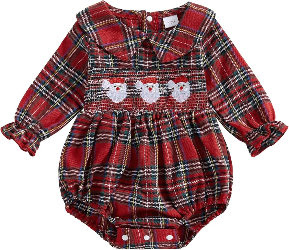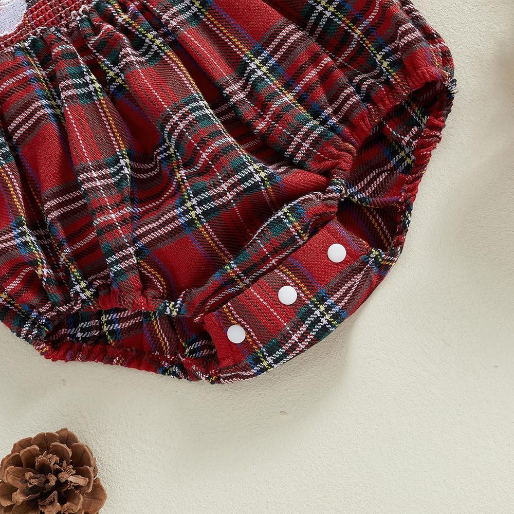 My First Christmas Baby Girl Outfit Santa Reindeer Onesie Plaid Polo Romper Smocked Fall Winter Clothes