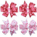 4Pcs Football Hair Bow Clips, Rugby Soccer Hair Clips - 3" Ribbon Bows for Girls, Football Printed Ribbon Bows, Football Hair Accessories for Kids Sports Party Hair Accessories, Team Gifts
