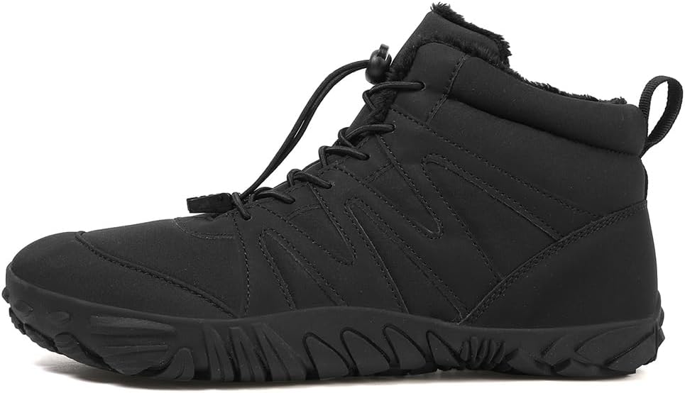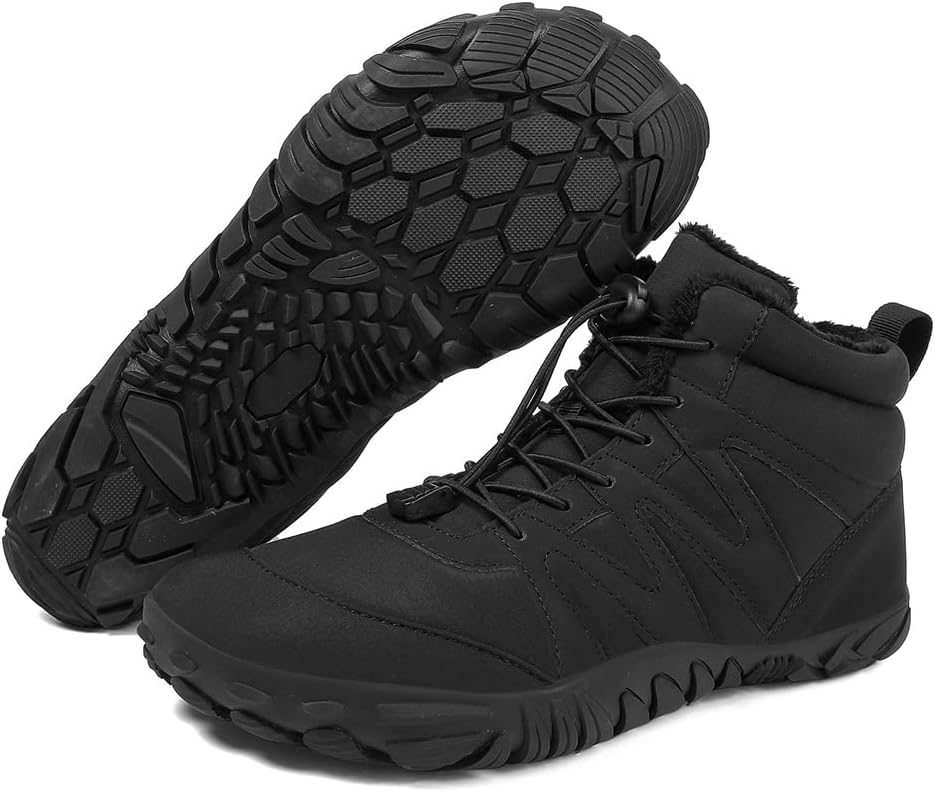 👍️【Ergonomic Design for Maximum Comfort】 Experience the ultimate in barefoot comfort with our zero drop sole design, which promotes natural foot positioning and reduces strain. The wide toe box winter boots ensure your toes have room to move freely, eliminating discomfort and pressure points. These winter barefoot shoes are perfect for long walks, hikes, or everyday wear.