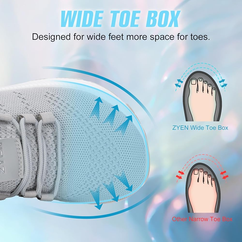 Wide Toe Box Design: Experience unparalleled comfort with ZYEN's wide walking shoes women extra-wide toe compartments, ideal for women seeking spacious walking and running shoes that let toes spread naturally.