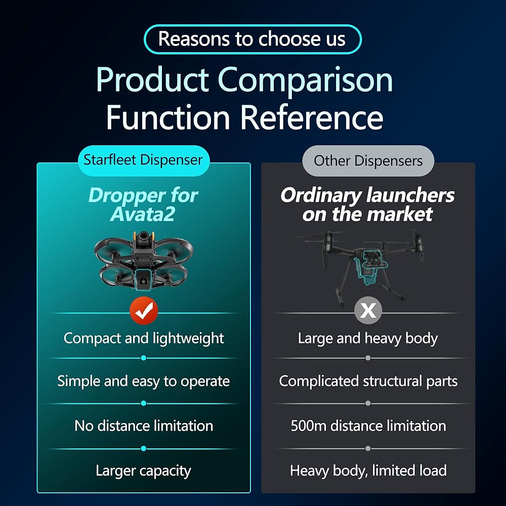 COMPATIBILITY : The airdrop system is suitable for DJI avata 2 drone, maximum load 400g,great idea for gift throwing,ring delivery,wedding flower delivery or advertising.