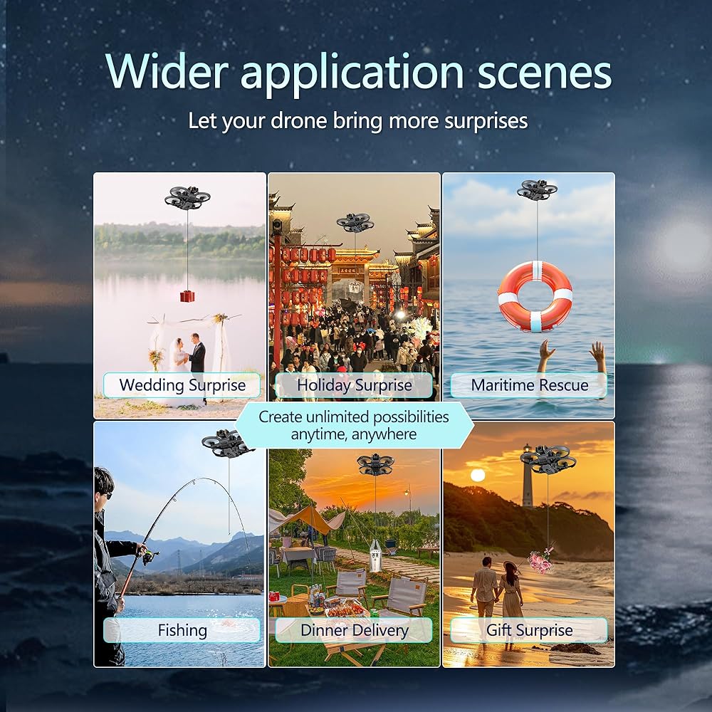 Quick-Release : With light sensitive control,easy to release the gift by drone remote controller.