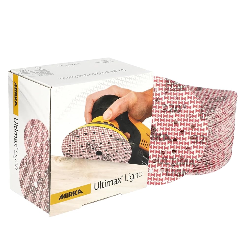 Mirka Ultimax Ligno 6-inch Grip Multifit Sanding Disc Ultimax Ligno is tailored for wood sanding applications. Fast and even cut thanks to special hourglass abrasive pattern, long service life with good resistance to clogging. Specially developed latex-impregnated paper for flexibility and edgewear resistance, features a Mirka Multifit hole pattern. Its dust channels leading to extraction holes take control of dust, keeping the abrasive grains cutting, and as air circulates under the abrasive it reduces heat during sanding – an important benefit when sanding substrates, avoiding turning wood dust into a clogging putty. Even larger wood dust particles are not an issue thanks to different width dust channels. Exposure to wood dust is a significant occupational health risk, meaning Ultimax Ligno is designed from the start with Mirka's dust-free sanding technology. Use for: Finishing, Sanding Suitable Materials: Chipboard, Soft / Resinous wood, Mahogany, Solid surface, Ash, Dupont Corian, Teak, Veneer, Samsung Staron, Pine, Melamine, Oak, Hardwood, Birch, Beech, Tungsten carbide Resist clogging with the new Mirka Ultimax Ligno The new Ultimax Ligno is tailored for wood sanding applications. It combines a fast cut with a long life, thanks to especially good resistance to clogging when sanding substrates. Made better to perform better: Sustainable Abrasive Carefully selected for optimal cutting performance: Hourglass Pattern Making the Ultimax Ligno, Mirka takes sustainability into focus. Mirka's precise, energy saving production process has a significant effect in creating less material waste. The recognizable grain pattern of the Mirka Ultimax Ligno ensures optimal cutting performance with consistent results. The segmented surface increases sanding pressure on each abrasive grain, while directing dust in the channels created in between. Its resistan