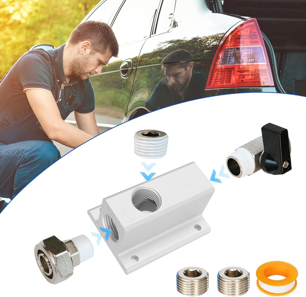 2PCS 3/4'' Compressed Air Outlet Kit, 1/2 Inch NPT Outlet Port, Only for 3/4 Inch Compressed Air Piping System, Equipped with Straight Air Piping Fittings and Brass Valves