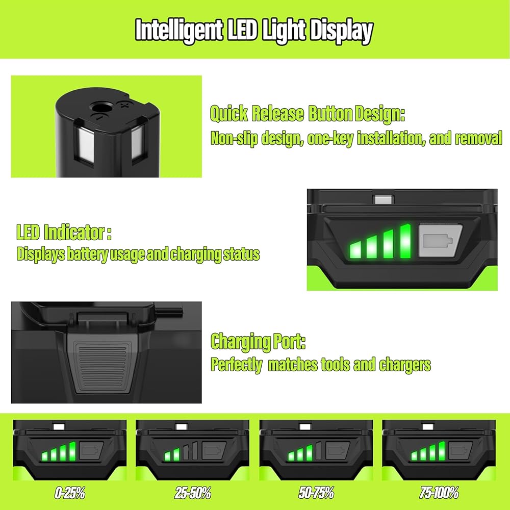 Applicable Model: Compatible with Ryobi P102, P103, P104, P105, P107, P108, P109 18v system cordless tools and fits all original or third party 18v lithium battery chargers
