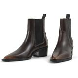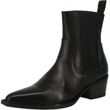Kelsey is the classic Chelsea boots with an edgy appeal. The style is crafted from black leather with a pointed square off toe shape, elastic side panels and heel loop tabs.