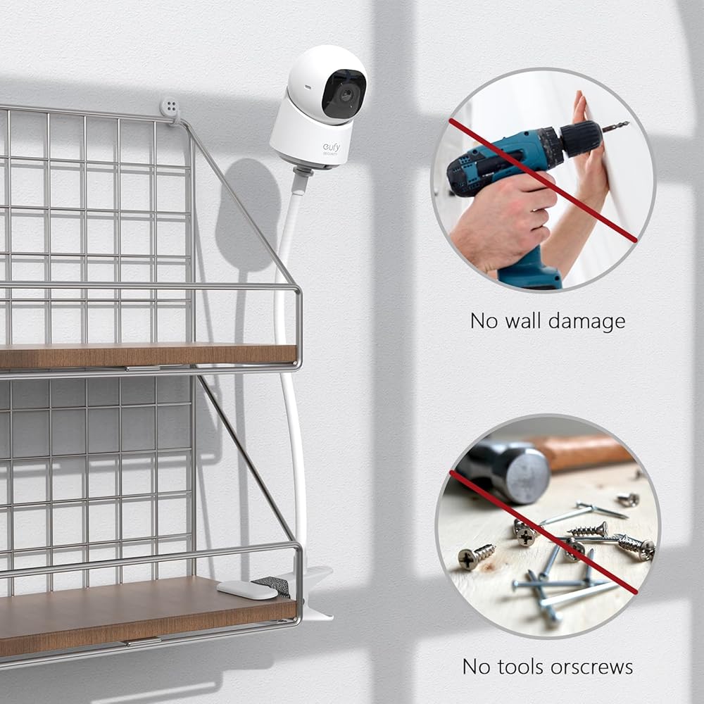Easy Installation: This camera clip mount for eufy Indoor Cam C210 can be mounted on desk, crib and shelf with a thickness of less than 2 inches firmly. making it a practical mounting solution to enhance security setup without drilling