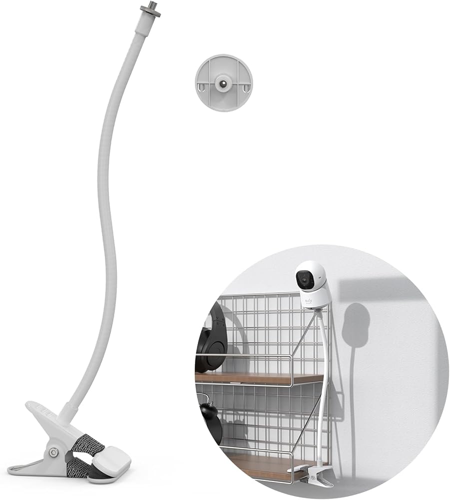 OkeMeeo Clamp Mount for eufy Indoor Cam C210, No Drill Camera Mount (15.7'' Gooseneck Camera Mount, White, 1 Pack)