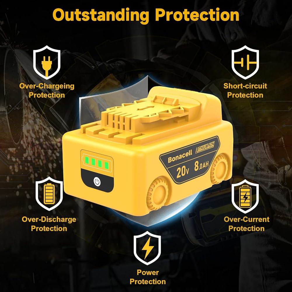 【Battery Specification】Replacement for Dewalt ALL 20V Max XR Battery | Battery type: Lithium-ion | Voltage: 20V | Watt: 160Wh | Capacity: 7000mAh | High quality Cells to lengthen battery life. Products have long-lasting performance and durability.