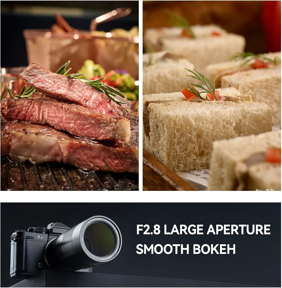 F2.8 Large Aperture Smooth Boken: With an F2.8 large aperture, this lens excels in low-light conditions while creating smooth bokeh. Whether for portrait or still life photography, the shallow depth of field provided by the large aperture makes the subject stand out