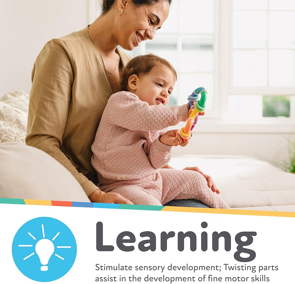 STIMULATES BABY'S SENSES: Bright colors and fun rattle sounds stimulate baby's senses, while the rings provide additional tactile interest for exploration