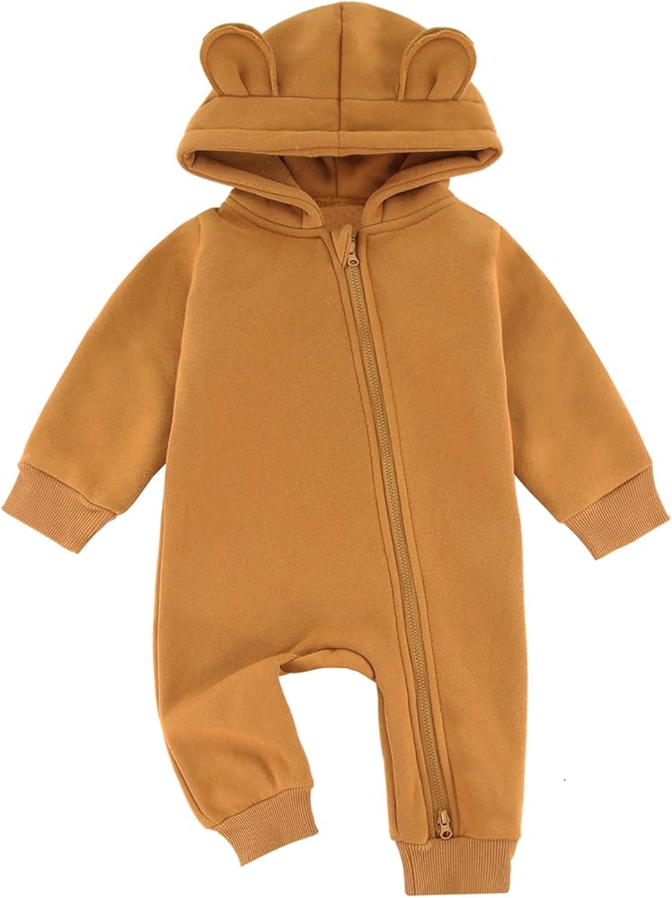 High Quality Cotton: Lightweight, Warm, Soft and comfy, Solid color one-piece romper with hood for baby girl boy. Stock up on must-have baby basics with these bodysuits.