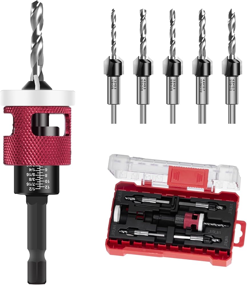 Countersink Drill Bit Set for Wood,7 PCS Counter Sink Drill Bit with HSS Tapered Drill Bits and 1/4" Hex Shank Quick Change for Woodworking with Storage Box