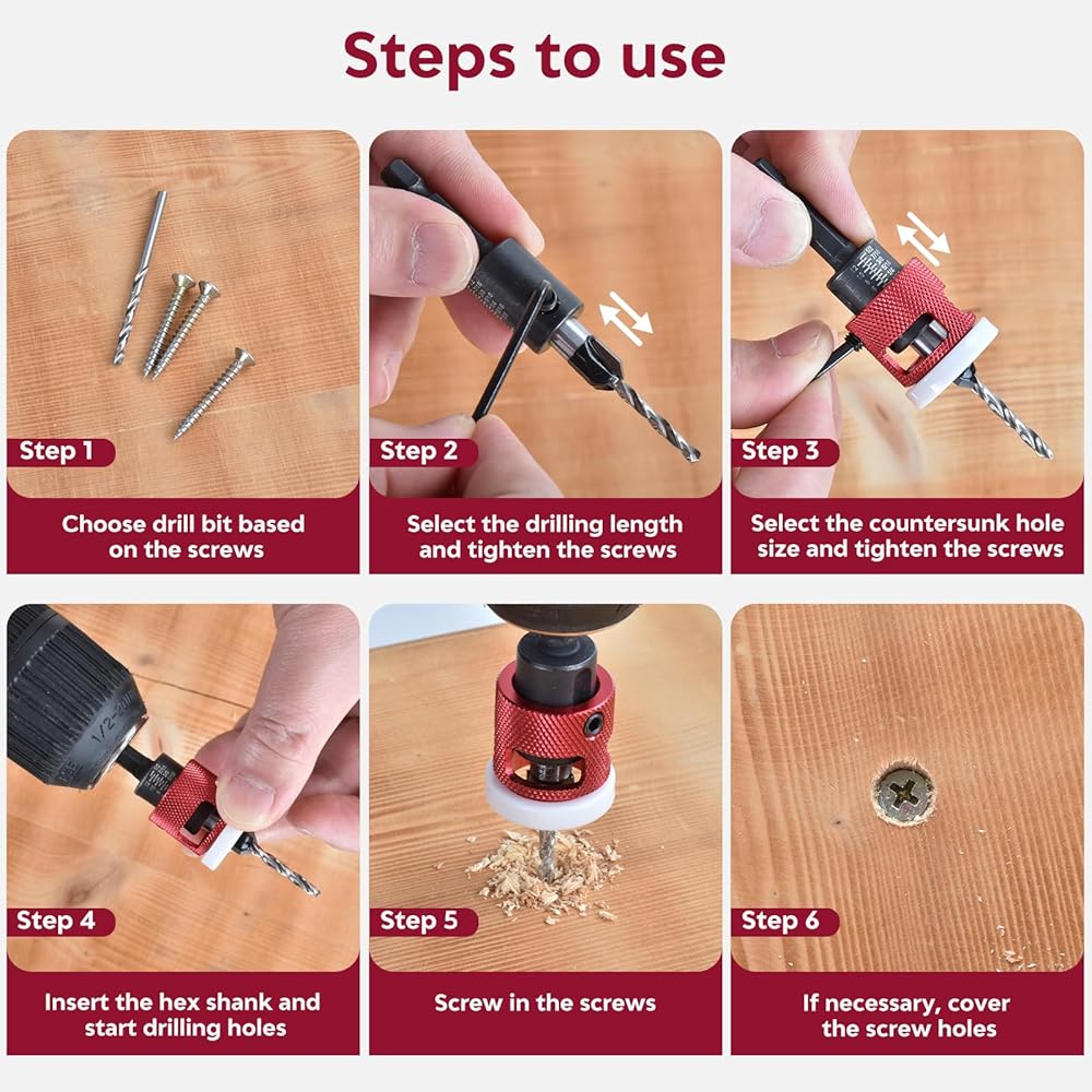 Widely Used: Working with natural woods, chipboard, man-made boards, plywood, MDF, decking, drywall, and various plastic boards. Wood drill bit for best results and smooth edges operate the countersink at slow speeds, approximately 200 RPM.