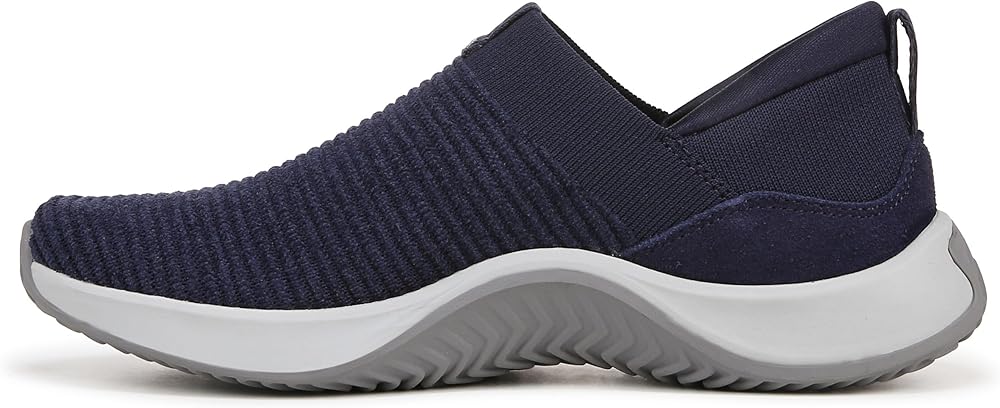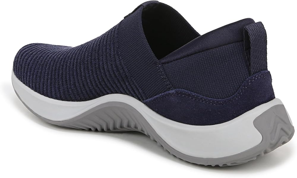 Bring premium comfort to the everyday in this sporty slip-on sneaker with cushion, shock absorption, and a sticky rubber tread sole. BEST FOR: Everyday walking + Casual wear. PERFORMANCE TECH: RE-ZORB® LITE for lightweight impact protection + shock absorption. MADE FOR WOMEN FIT: Designed for a woman's unique foot shape, muscle movement, and build with a narrower heel, roomier toe, and softer foot cushioning. MATERIALS: Stretch engineered knit with ribbed texture + Padded heel collar for extra cushioning + Leather heel overlay. CLOSURE: Slip-on fit with stretch topline for extra flexibility + Front and back pull tabs for easy on/off. INSOLE: Premium anatomical insole with RE-ZORB® cushioning for shock absorption. MIDSOLE: Lightweight EVA for soft cushioning with RE-ZORB® LITE. OUTSOLE: Sticky rubber sole with tread grooves for extra traction + raised sidewalls for extra support. WEIGHT: 220 g/7.8 oz per shoe. HEEL-TO-TOE DROP: 8 mm.