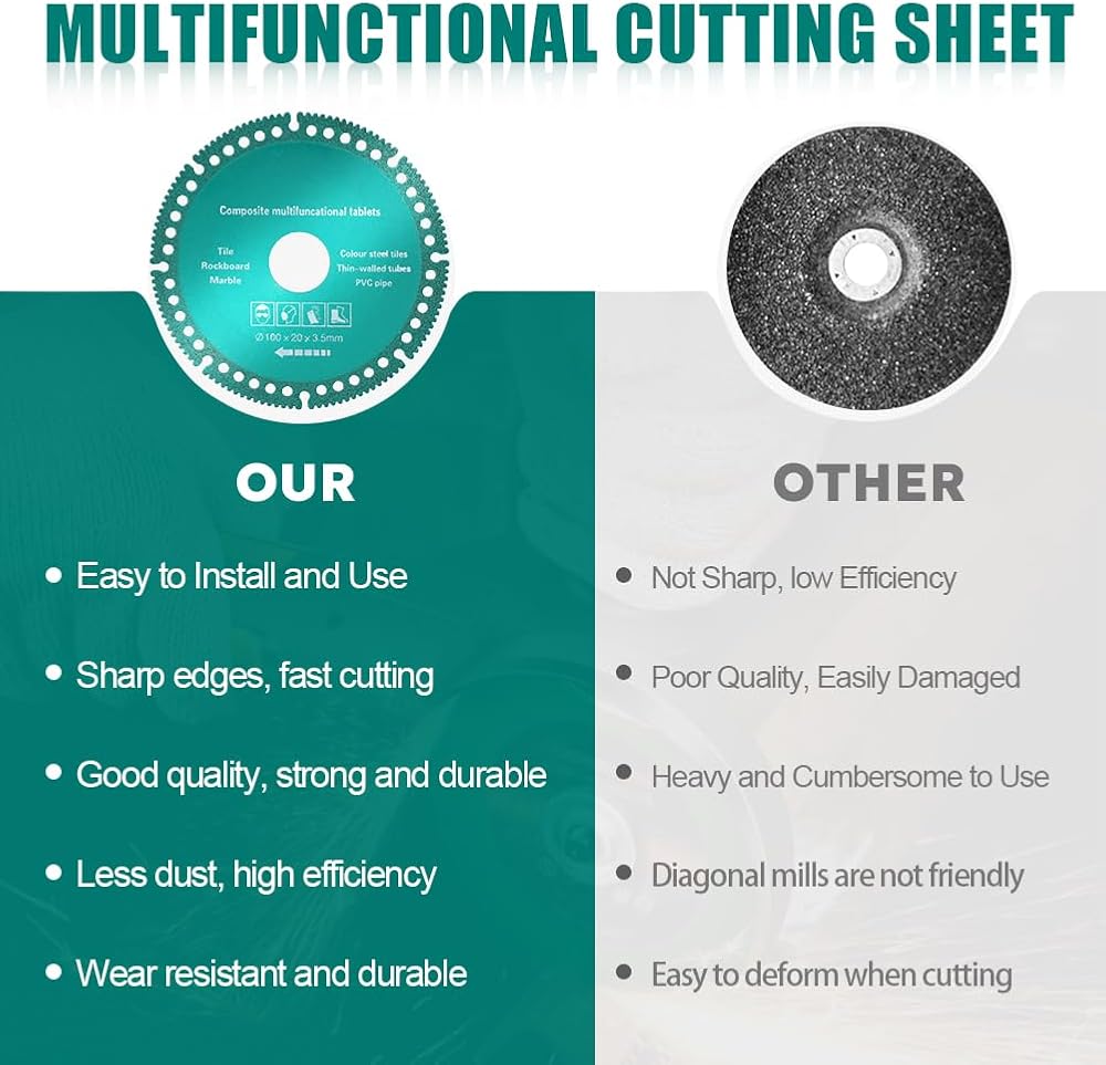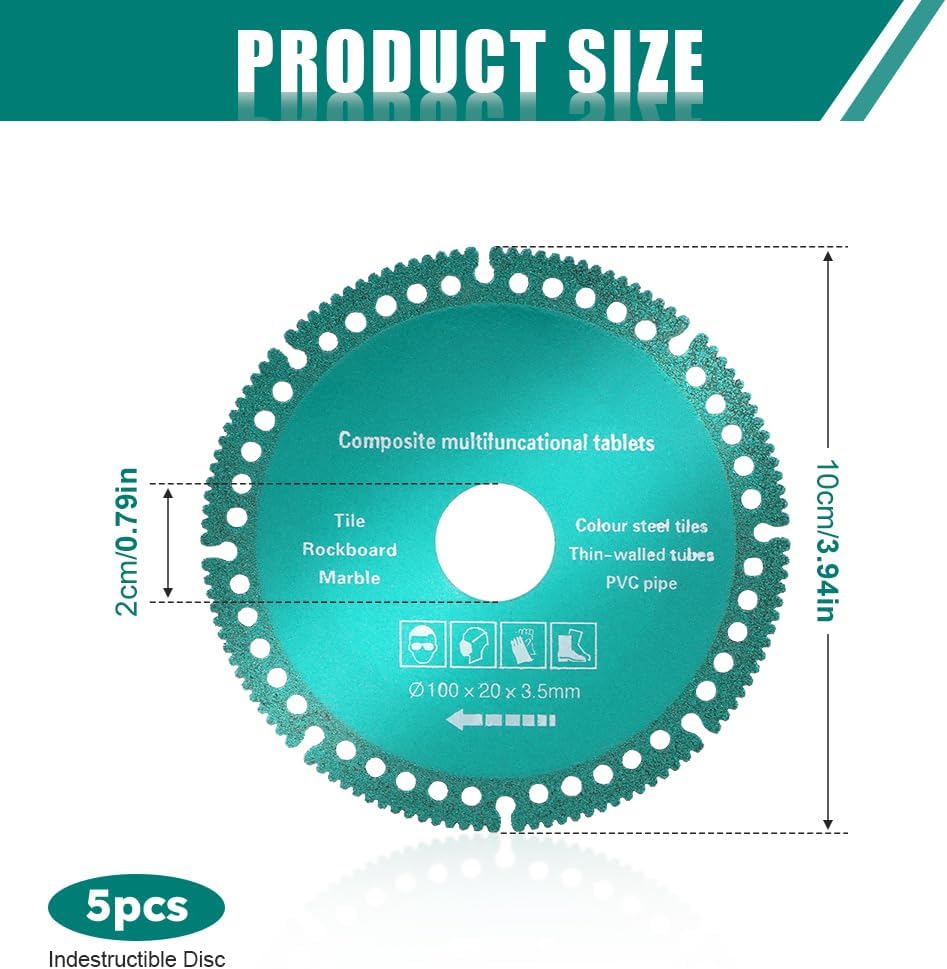 • Wide Application: indestructible disc 2.0 can cut everything in seconds. It can be used for PVC pipes, metal pipes, stainless steel, color steel tile, angle iron, wood, ceramic, quartz stone, granite etc