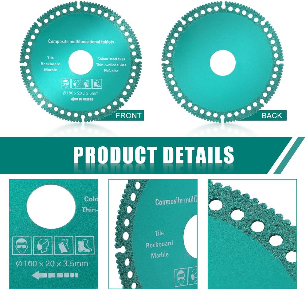 • Precise and Easy Cutting: These cutting disc are very sharp to cut everything easily. The 1.5mm ultra thin saw blade is with diamond particles to provide flat and clean cutting. The indestructible wheel surface is high temperature-resistant and wear-resistant to cover a continuous cutting work.