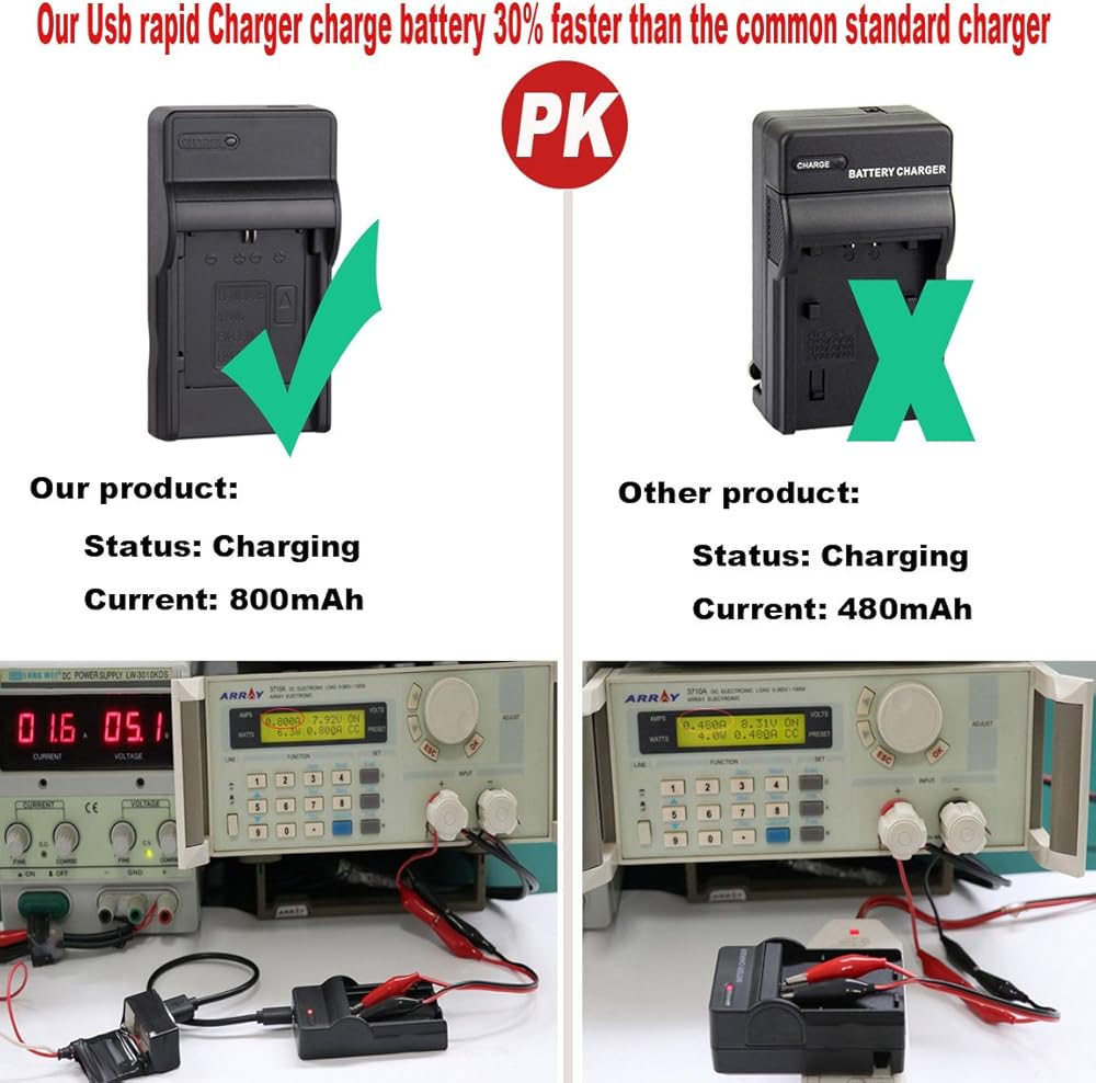 • With Upgraded IC Chip,Our USB Rapid Charger charge your battery 30% faster than the common standard charger in the market. Micro Input: DC 5V+/-5%,Output: DC 4.2V +/-0.05V, 800mAh