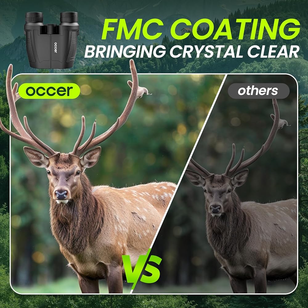 Advanced Optics for Enhanced Clarity: The fully multi-coated optics ensure a brighter view with sharp, detailed images. The 15mm large eyepiece and multiple coatings on all glass surfaces achieve a light transmission rate of 99.99%, resulting in bright, sharp, and high-contrast images. These binoculars also excel in low-light conditions, providing effective night vision capabilities.
