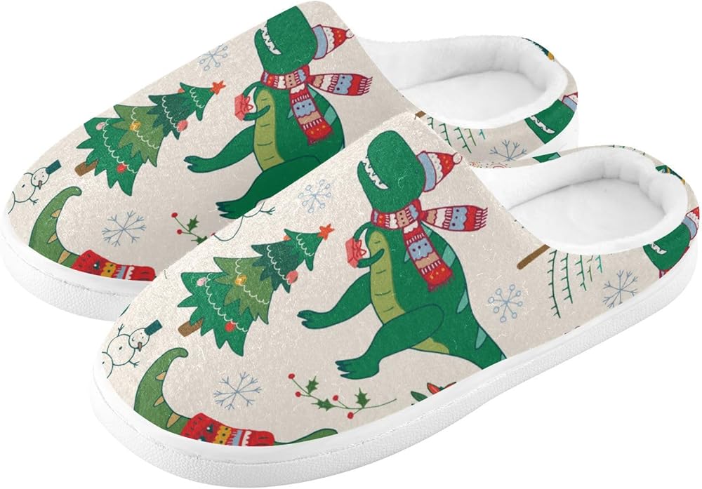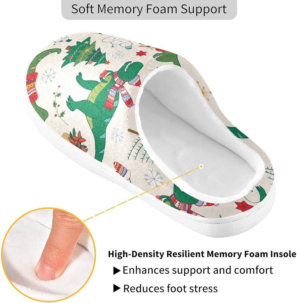 ZOEO House Slippers for Women Girls,Dinosaur Christmas Winter Fuzzy Memory Foam Cozy Shoes for Men Slippers Indoor Outdoor Bedroom