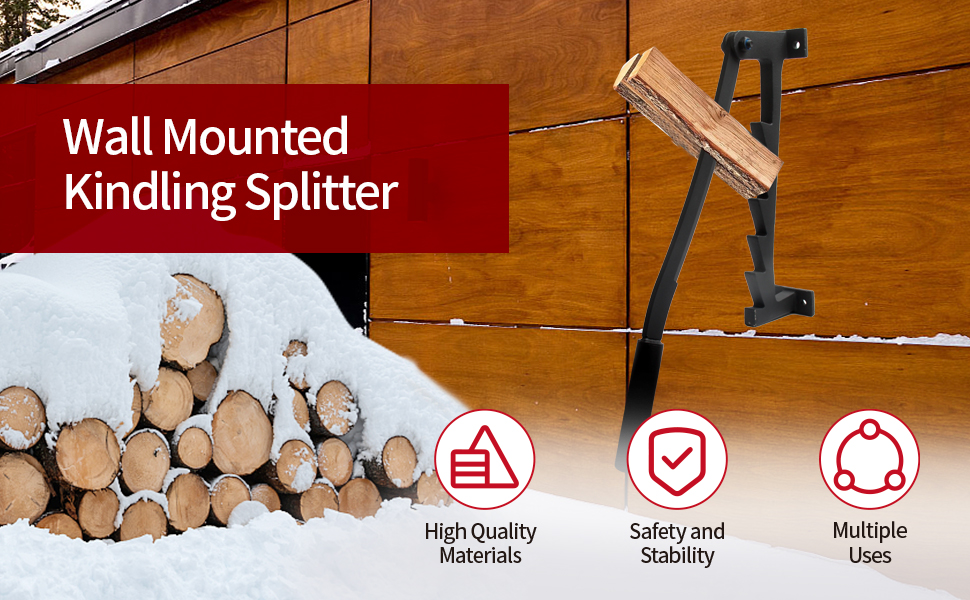 Easy to Use: This wall mounted kindling splitter can be mounted on the wall to avoid bending over during the process of chopping firewood. 180° angle adjustment and interchangeable extended handle design makes cutting more effortless compared to traditional wood splitting tools while improving efficiency. Simply lift the blade, fix the wood on the lower teeth, and pull the blade down to process the wood to the desired size.