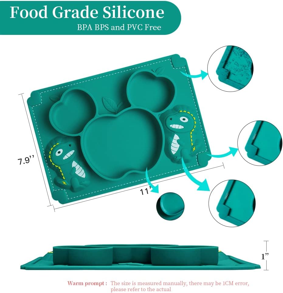 SFCCMM Toddler Baby Plates Silicone Divided Cartoon - Portable Non Slip Suction Toddler Plates for Children Babies and Kids Baby Feeding Tableware Kids Dishes Children Dinnerware Eating Food Bowl