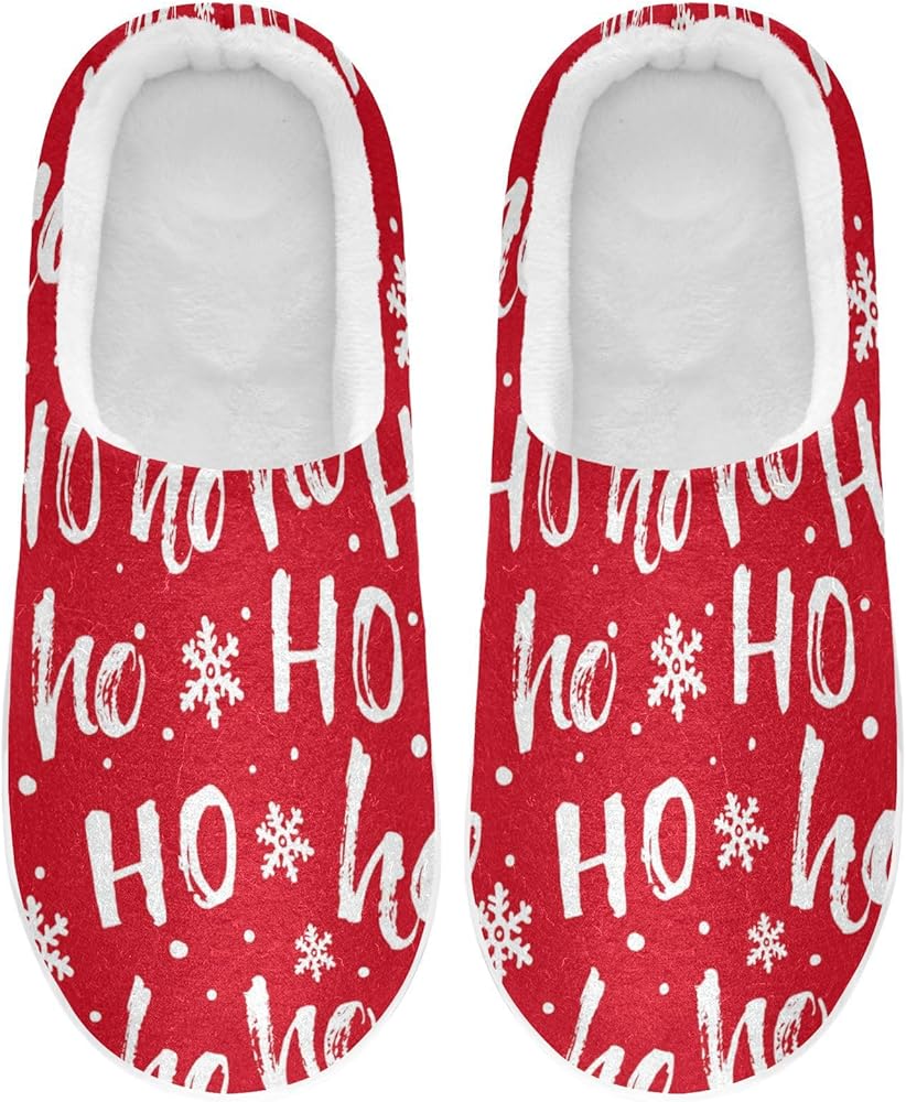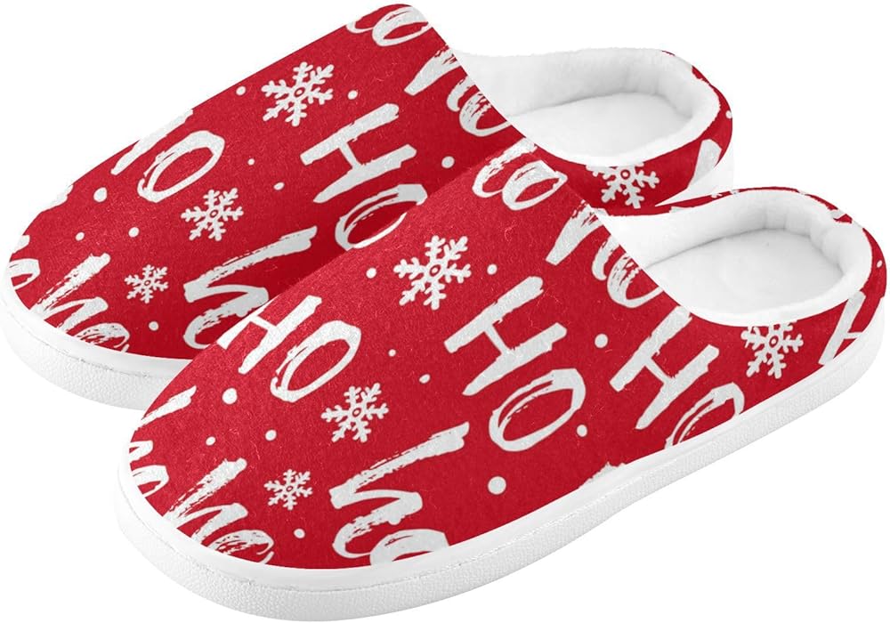 ZOEO House Slippers for Women Girls,Santa Claus Laugh Hohoho Letter Winter Fuzzy Memory Foam Cozy Shoes for Men Slippers Indoor Outdoor Bedroom