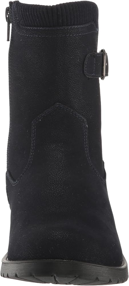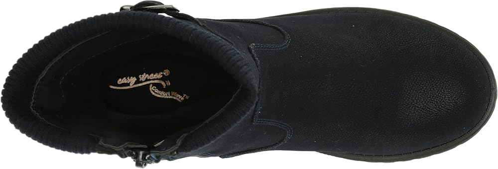 The Sunisa by Easy Street is the perfect boot for all your fall outfits. The contemporary silhouette design delivers your comfort needs while providing a cozy vibe that is all about your comfort. Designed with a low block heel, sweater topline, and buckle ornamentation help make this style stand out. Experience what the Comfort Wave construction anta removable Easy Motion by Easy Street ultra-light insoles are all about. Inside zipper for easy on/off.
