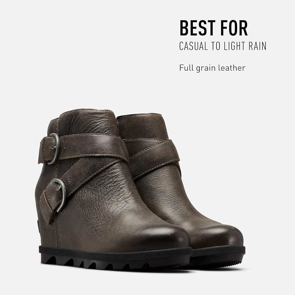 Joan gets an edgy touch with two oversized buckles and the same all-day wedge you know and love. These women's wedges feature rich waterproof leather, soft synthetic lining and a comfortable footbed. This is the revved-up wedge you'll want to wear anywhere and everywhere. At Sorel, we believe you are your most powerful tool and the determination you find within is an unstoppable force. Sorel challenges the status quo by creating unexpected footwear that pushes the boundaries of function-first fashion. We stay in motion and combine expert craftsmanship and of-the-moment designs to create all-season footwear so you can push yourself forward. What began decades ago with premium boots, crafted with an unparalleled balance of construction and protection, is now a brand dedicated to both functionality and fashion.