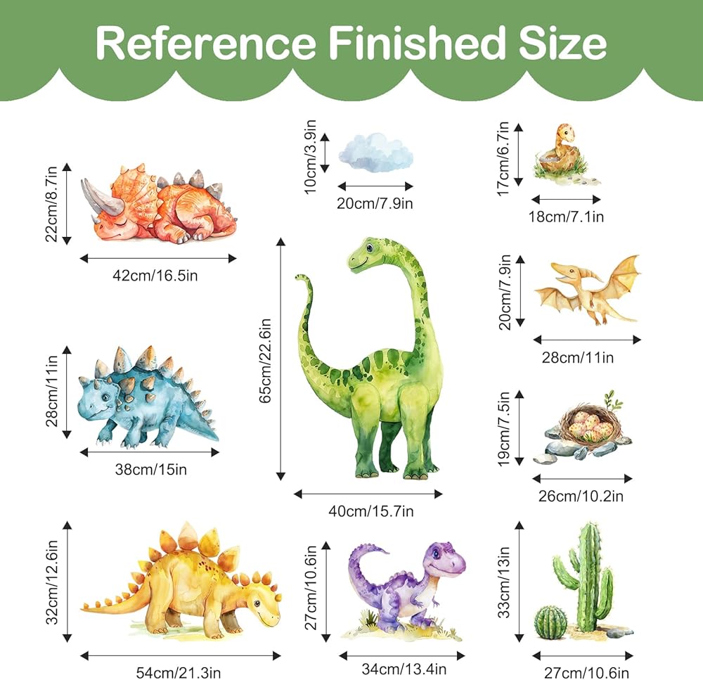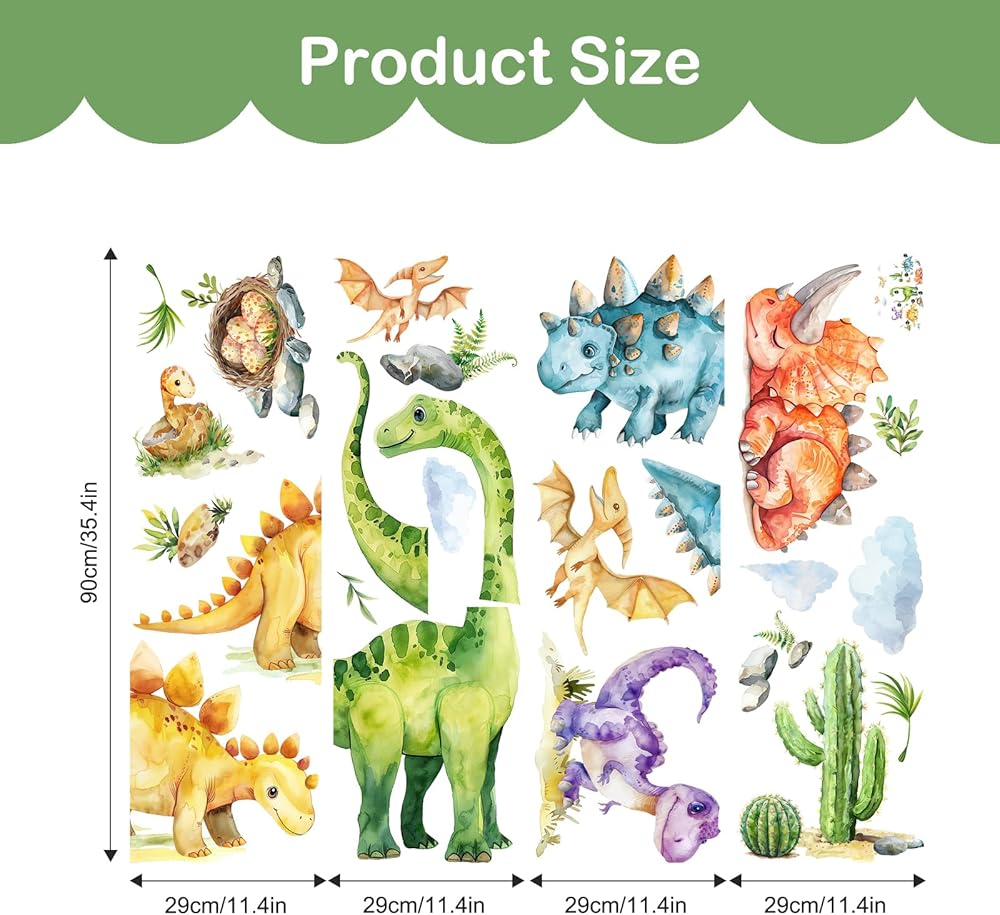 Wide Application: Cartoon wall stickers are suitable for decorating baby nursery, bedroom, playroom, living room, adorable kids room. It sticks to any smooth surface, walls, furniture, tiles, mirrors and windows. Dinos stickers are good party supplies and favors to decorate kid's parties. It also can be used as a gift for toddlers, kids, teens on birthday, baby shower or holidays.