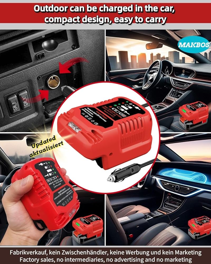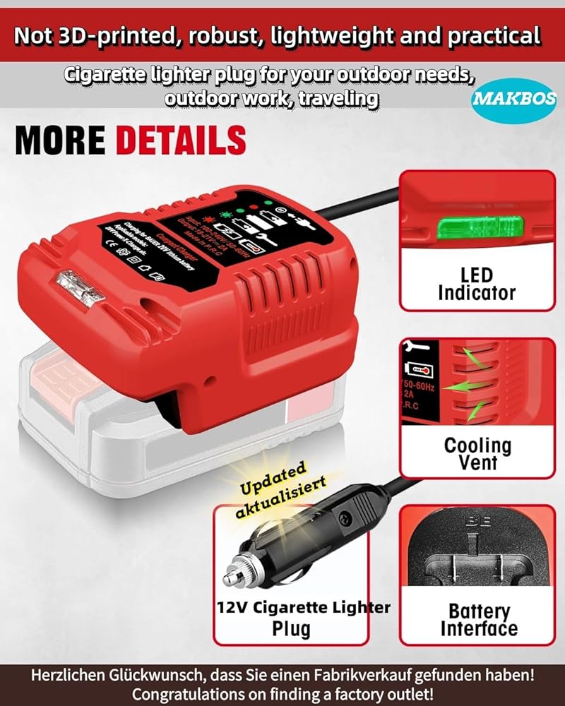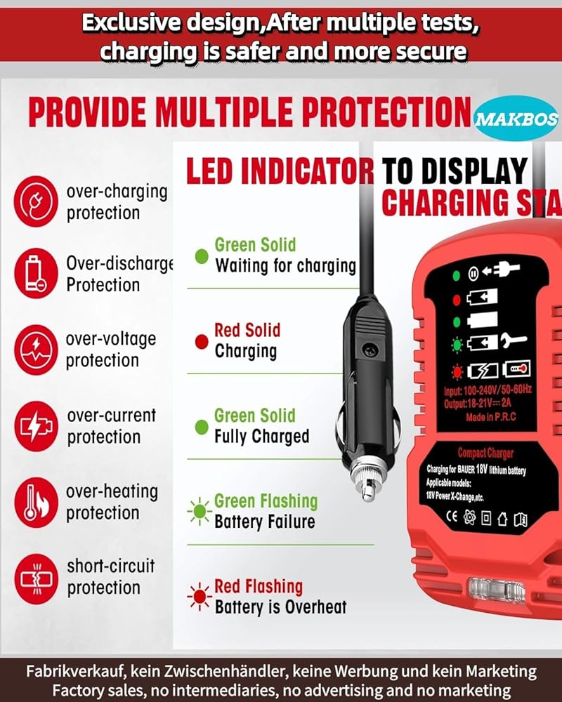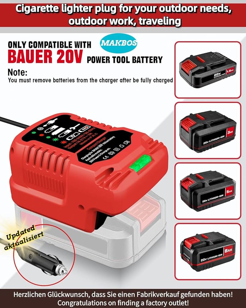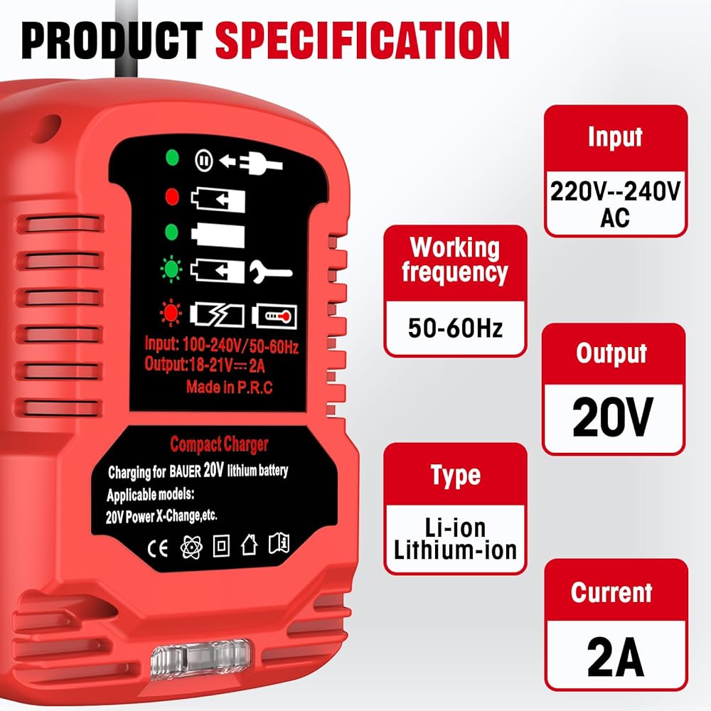 [For Bauer 20V/18V Mini Charger]: Charging Input: 12V Output: 20V, Charging Status: with LED light indication