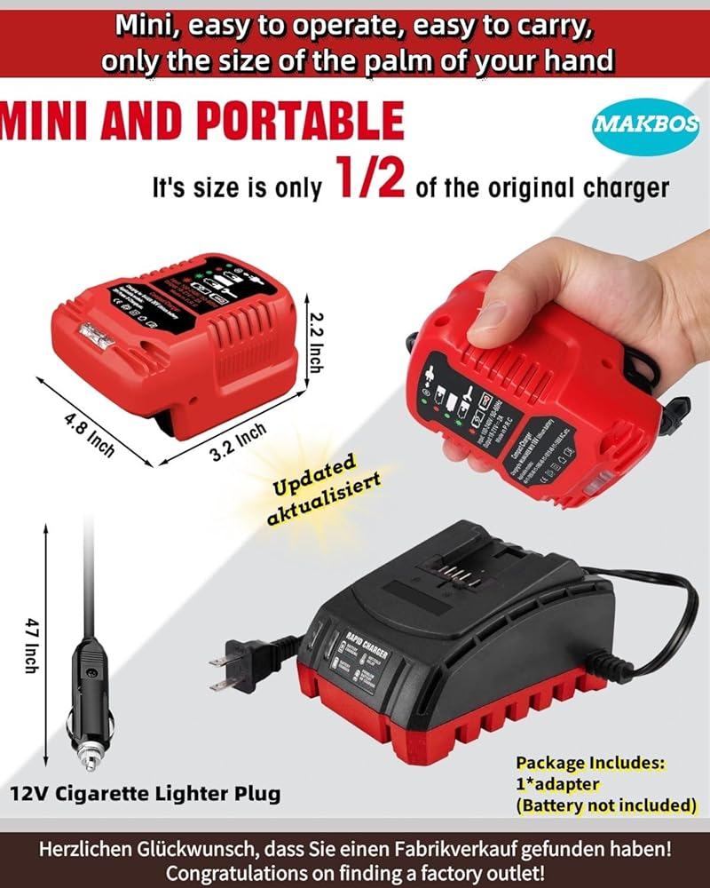 [MINI DESIGN]: 1/2 the size of the original charger, space saving, this 20V battery charger is very mini and inexpensive, easy to carry and store. Great for traveling and carrying.
