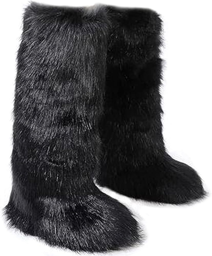 Valpeak Womens Faux Fur Boot Winter Fluffy Long Furry Boots for Girls Outdoor Fuzzy Knee-High Boots