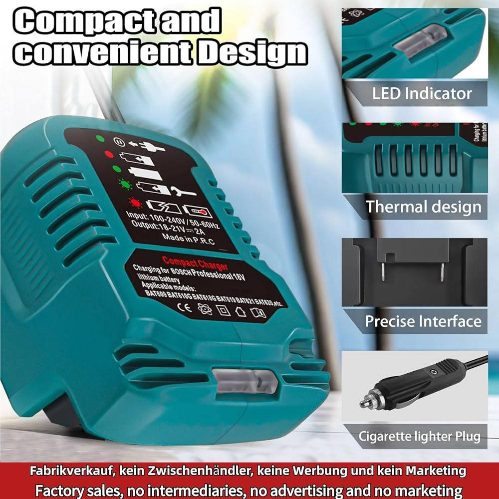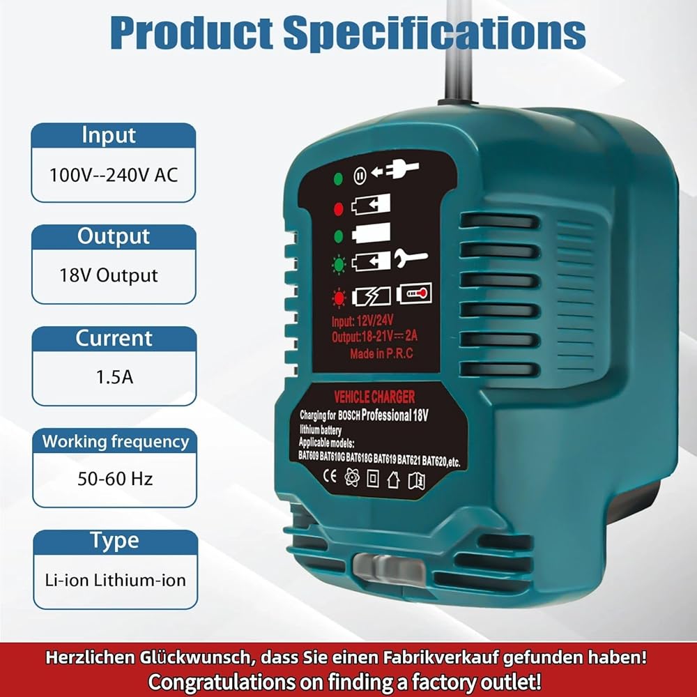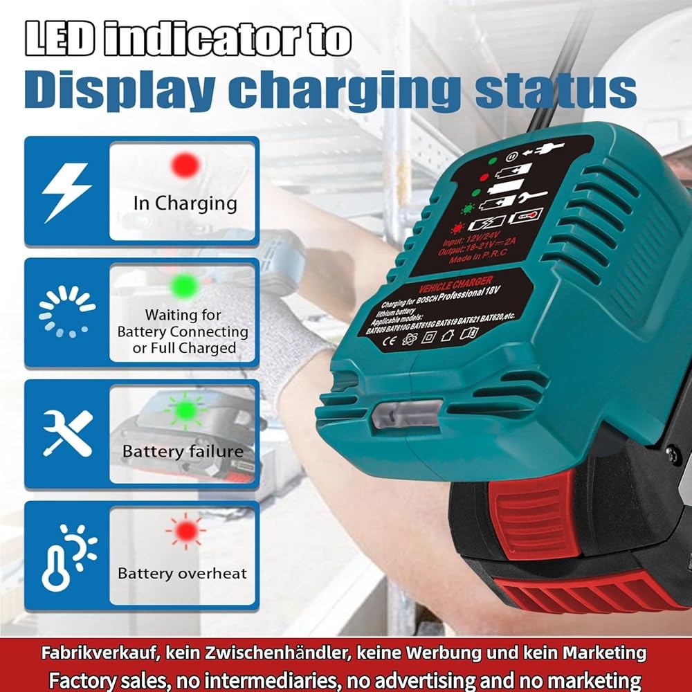 [For Bosch 18V Mini Charger]- Charging Input: 12V Output: 18V, Charging Status: with LED light indication,for Bosch 18-volt max Li-ion charger features an LED charge indicator, so you know when the battery is returned to full power