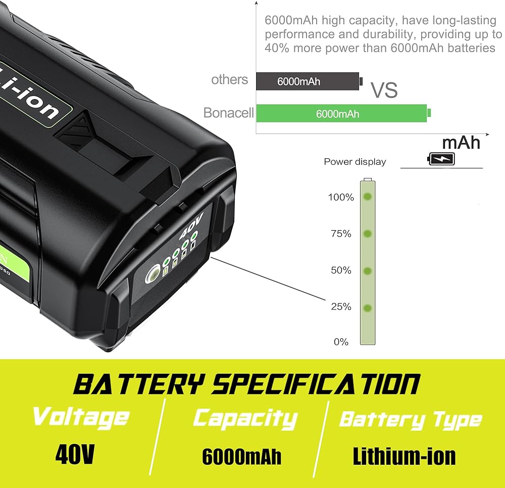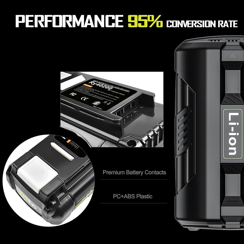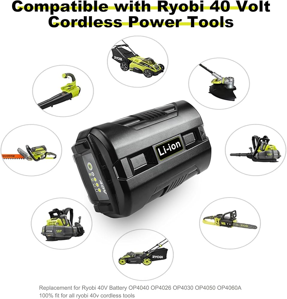 🔋【Wide Compatibility】 The OP4060 battery compatible with all RYOBI 40-Volt lithium-ion tools (string trimmer, lawn mower) and chargers, including RY40200 RY40403 RY40204 RY40530 RY40460 RY40180 RY40250, and OP403A OP401 ZROP401 OP400A RY40440