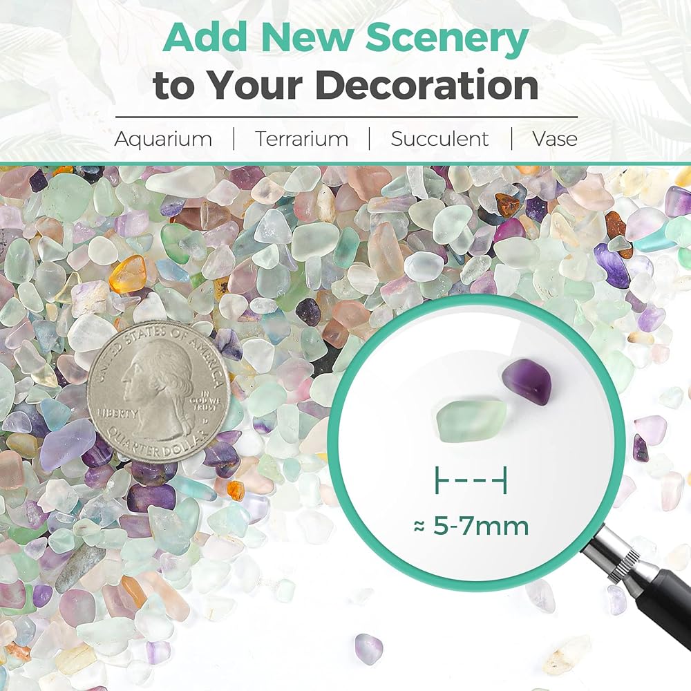 | Natural Chips Stone | - Made of selected crystals with irregular shapes and rich color, 0.1"-0.5" in size, they are perfect for various sence setting. Premium material makes them resist fading for long-lasting beauty. Warm Tips: Rinse before first use to get rid of dirt.