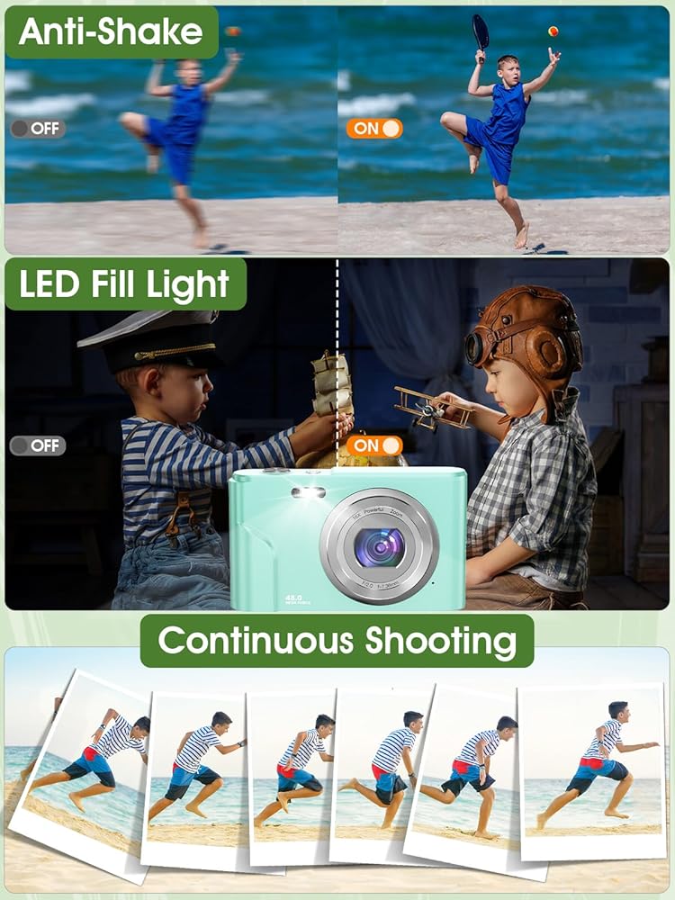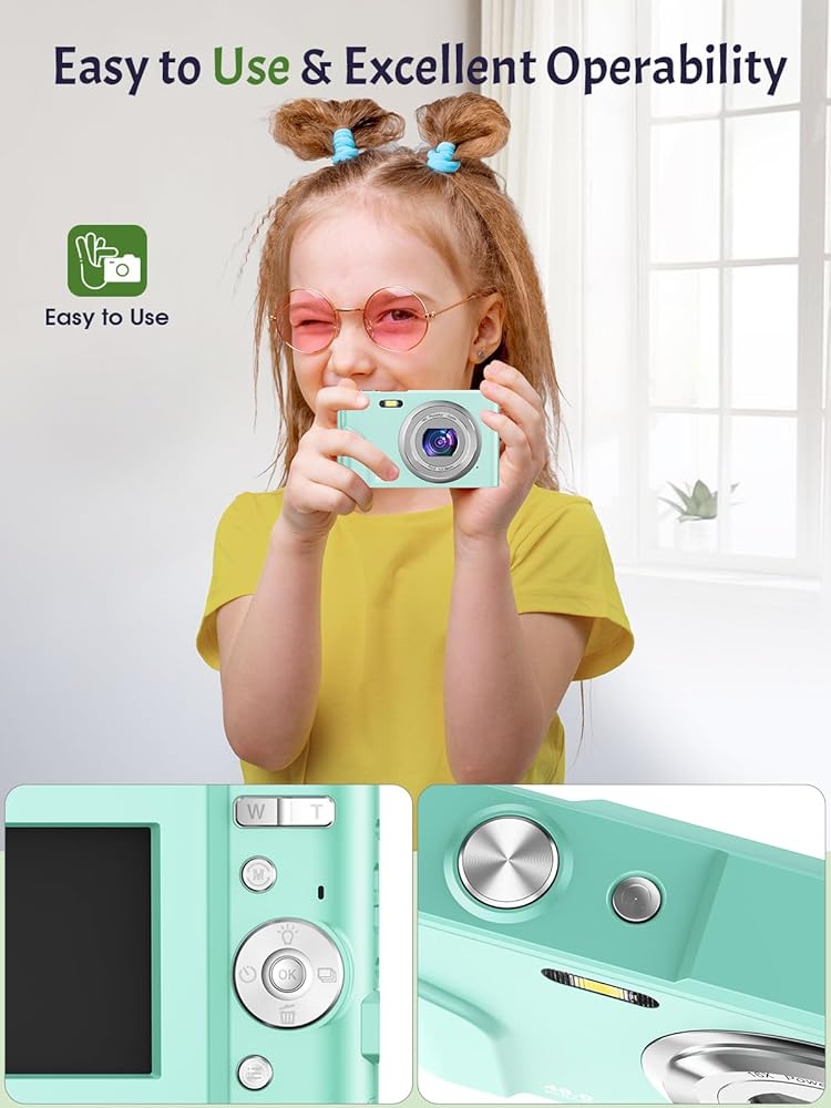 【2024 Upgraded Kids Camera】With its upgraded 1080P 48-megapixel resolution and autofocus feature, this digital camera can shoot clear and sharp pictures. As a beginner kids camera, the point and shoot digital camera can also be used as a webcam to do video calls, vlogging, or live streaming.NOTE: Memory Card is NOT included.