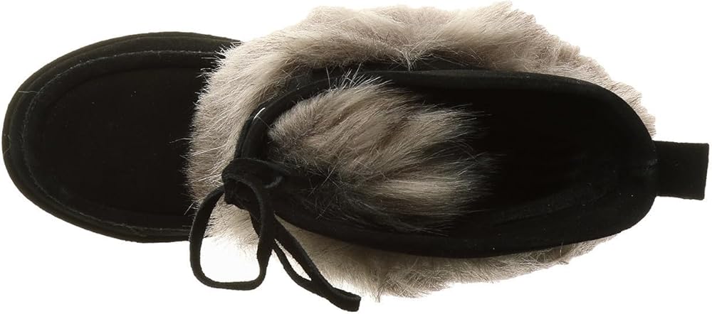 SUEDE FAUX FUR UPPER & WOOL BLEND LINING: This boot features suede lace with faux fur pom poms and wool blend lining that regulates body temperature to keep your feet warm. The comfort sheepskin footbed provides additional softness and reduces foot fatigue.