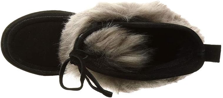 COMFORTABLE HIGH-QUALITY MATERIAL: Striking, confident, charming are just a few words that come to mind when describing the Arden boots and how you will feel wearing them. A unique full suede upper with a fuzzy faux fur accent band and suede lace with faux fur pom poms.