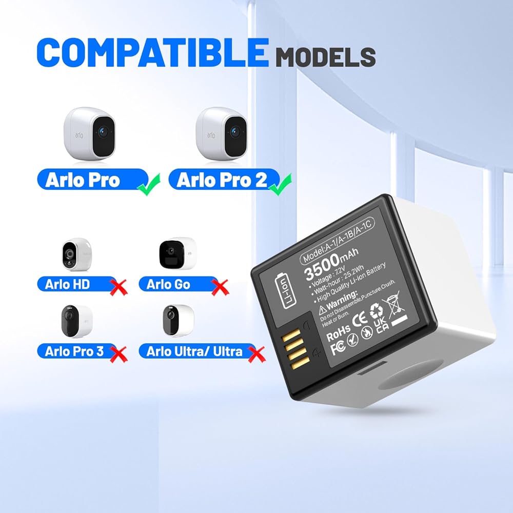 [High Quality Assurance] ☏: The batteries for arlo pro 2 offering of high performance and long lasting usage, and built-in multiple circuit protection from overcharging, short-circuiting, overheating, over-voltage to assure you and your device safe. Battery life varies based on usage, settings & temperature.