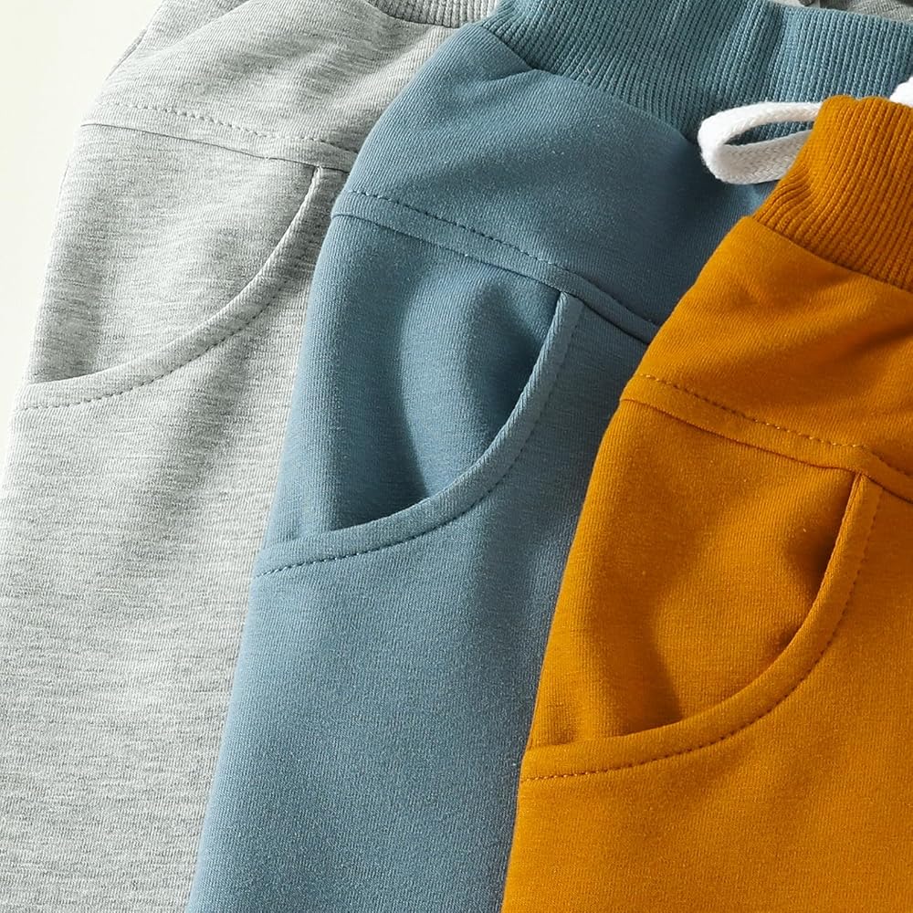 Toddler Baby Boys 3-Pack Pants Solid Color Elastic Waist Jogger Pants Kids Sweatpants