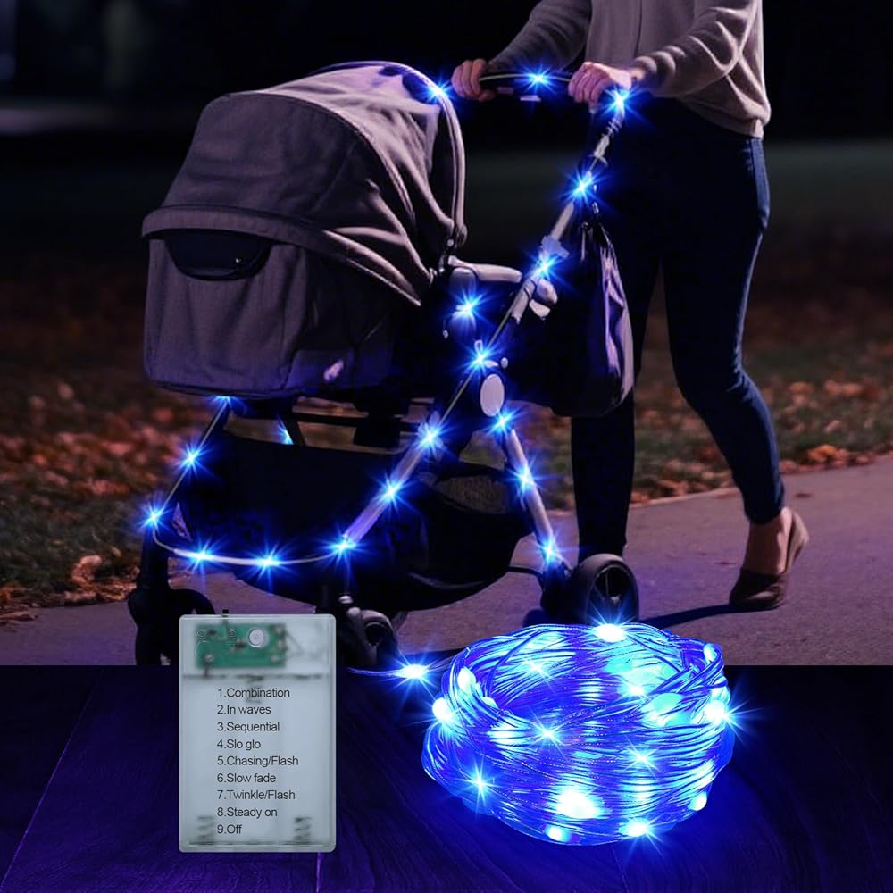 - Quantity: a 9.8ft stroller light + 20 cable ties + waterproof battery box (requires 3 AA batteries, not included).