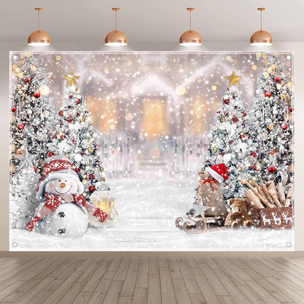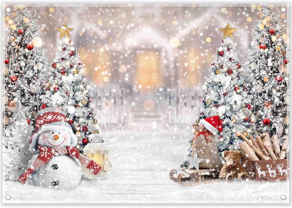 ZTHMOE 8x6ft Polyester Winter Christmas Photography Backdrop Snowman Pine Tree Snowflake Background Xmas Trees Party Decorations Photo Banner Props (Blurring is a Design Effect)