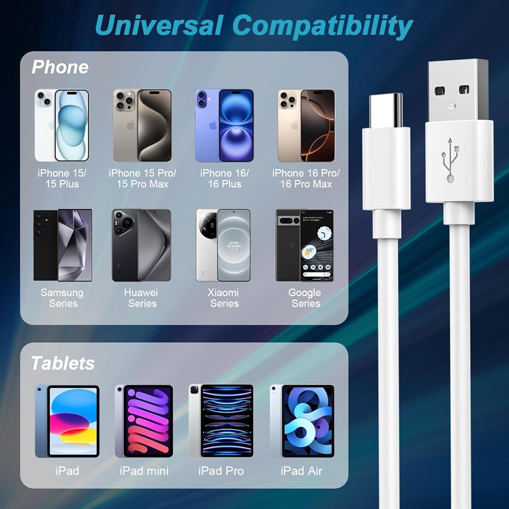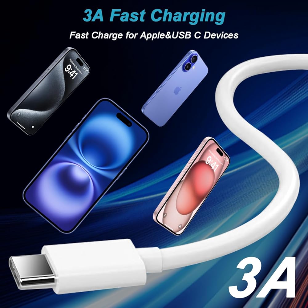 【Widely Compatibility Car Carplay Cable for iPhone 15 16 Series】 This 6ft iPhone 15 16 carplay cable for car charger connects and perfect compatible with Apple Carplay,USB Car Charger Adapter, with all USBA to USB C fast charger, your iPhone 16/16 Plus/16 Pro/16 Pro Max, iPhone 15/15 Plus/15 Pro/15 Pro Max, iPad Pro 13-inch (2024), 12.9-inch, 11-inch, iPad Air 6th/5th/4th Gen, iPad Mini 6th Gen, MacBook Pro 13 inch, Macbook Air 13 /m1 Inch, MacBook 12 inch, Apple TV Remote (3rd Generation), and the Apple car carplay cable cord also for Galaxy, Google, LG, Moto, Android Phones and more.