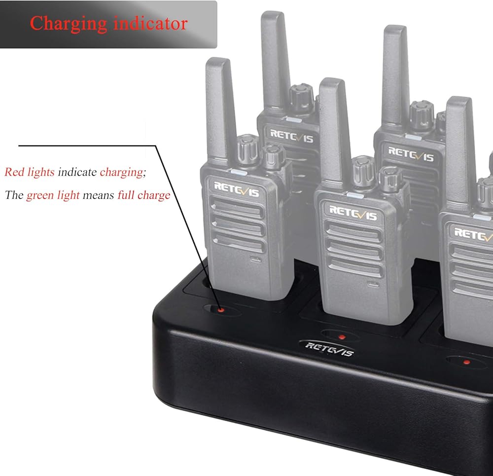 5 LED indicators; walkie talkie multi-unit charger checks the charging status easily; the red indicator is charging; the green indicator is fully charged; each charging grid refers to the 25% charging process