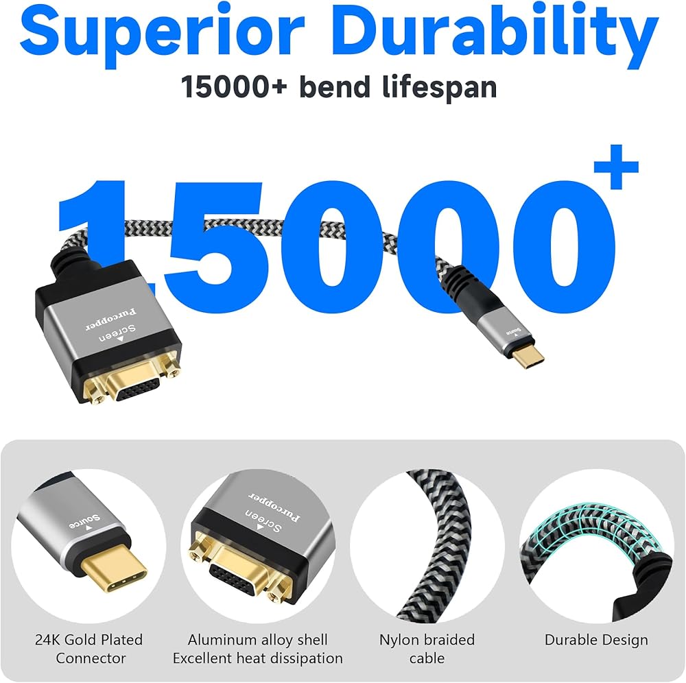 High Quality Materials : This cable uses OFC inner conductor, which has stronger conductivity. The use of 24K gold-plated connectors is more corrosion-resistant. High quality aluminum shells provide better heat dissipation. Durable nylon braided jacket with a bending life exceeding 15,000+, extending service life.
