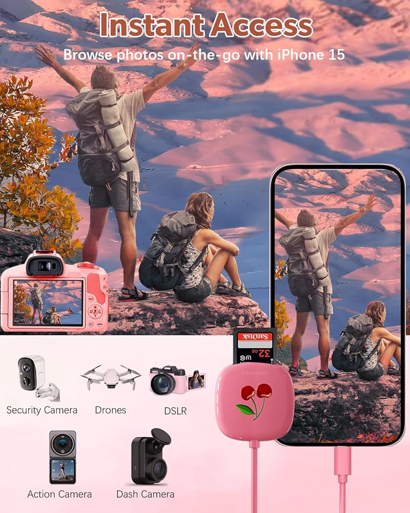 【Thoughtful Design】This limited edition circular sd card reader usb c, with its elegant pink exterior and an 8cm high-quality matte USB-C cable, showcases its distinctive design aesthetic. It's not just the ideal choice for fashion-forward individuals, but also, with its portability and practicality, it's the perfect companion to carry with you. Whether you're in the office, on a business trip, traveling, or at home, this type c sd card reader can easily meet your storage card reading needs, allowing you to enjoy the convenience of data transfer anytime, anywhere. Tips: USB C SD card adapter - designed for otg-enabled usb-c smartphones (not compatible with iphone lightning).